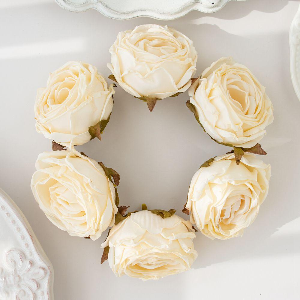 Искусственный цветок Обожженный край Роза Свадебный Свадебный букет Декор Дом Улица Сад Фестиваль Вечеринка Венок Сделай сам Подарок Скрапбук 5PCS
