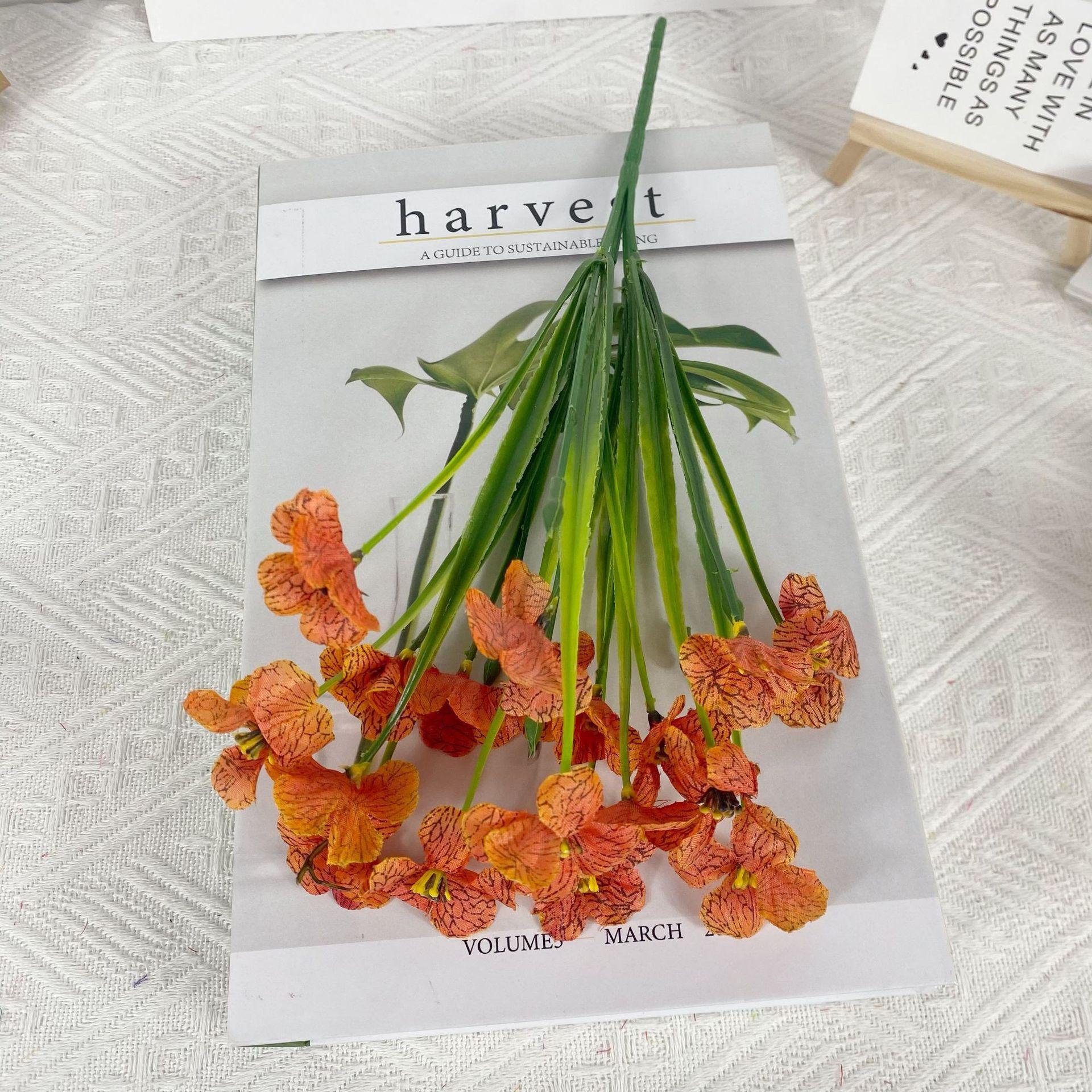 Искусственный цветок 5 веток Весенняя трава Фиолетовый Искусственный Поддельный Цветок Растение в горшке Домашнее украшение Свадебное Украшение для улицы