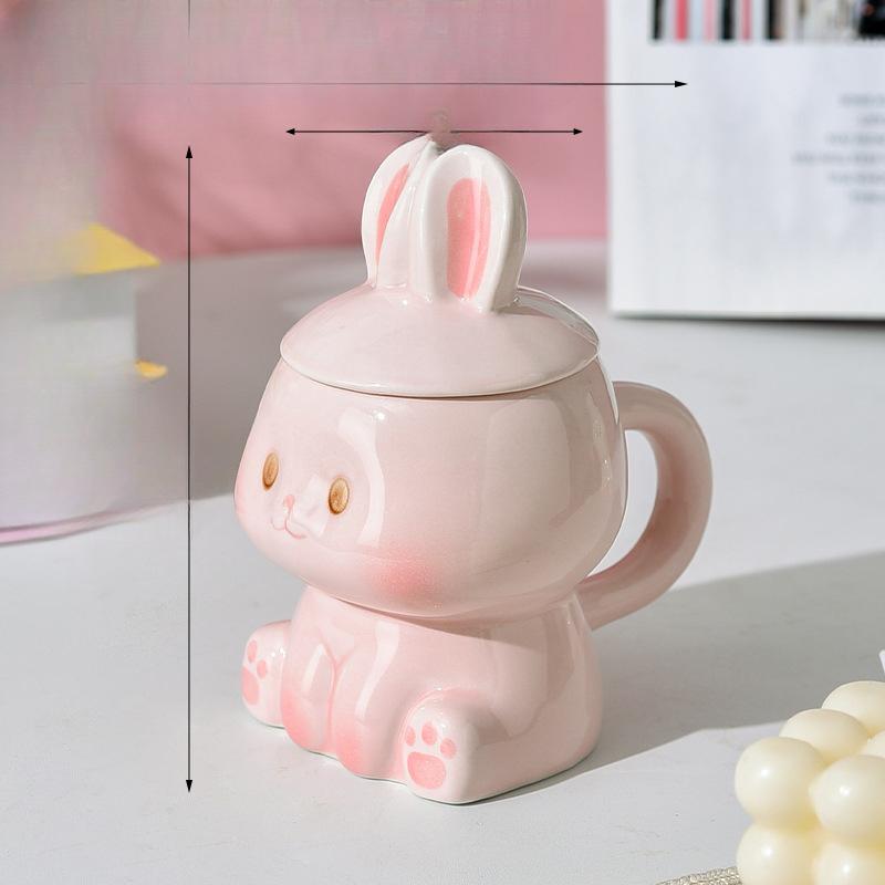 Исцеляющая кружка «Маленький кролик» Керамическая чашка Креативная чашка для воды с крышкой Розовая Девичье сердце Милая и красивая чашка 350ml