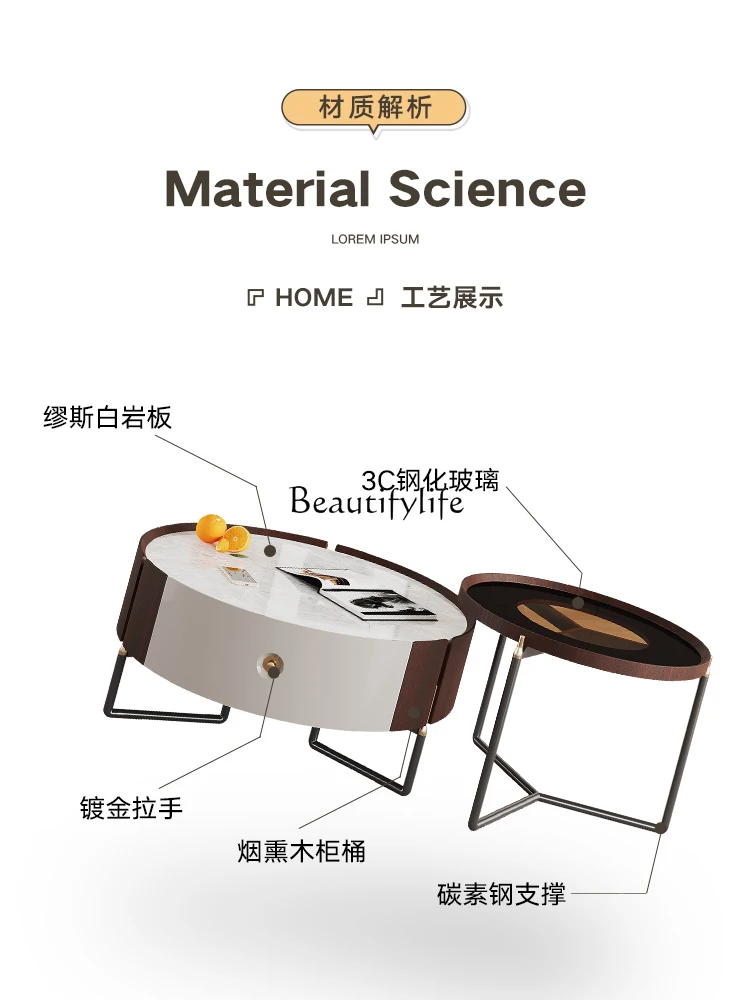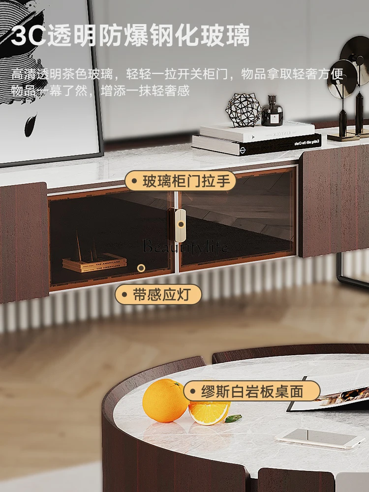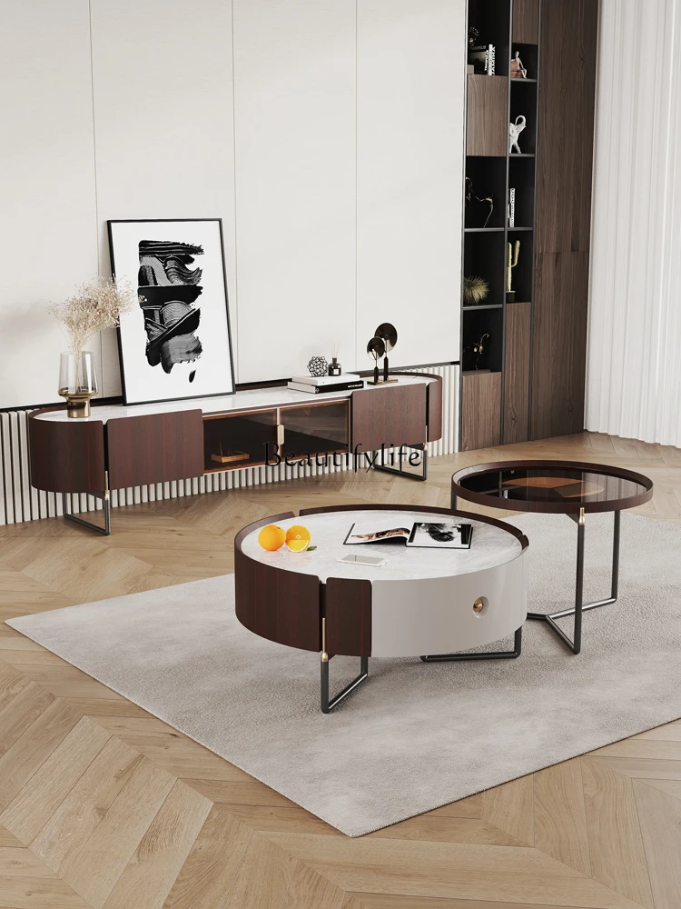 Italian Silent Cream Style Living Room Combination Size round Tea Table TV Cabinet