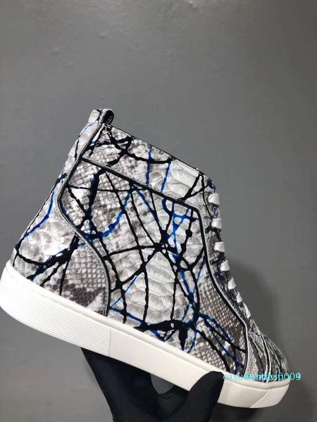 graffiti python leather high sneakers shoes women,men red bottom casual party leisure flats famous dress walking with box eu35-46 c09, Black