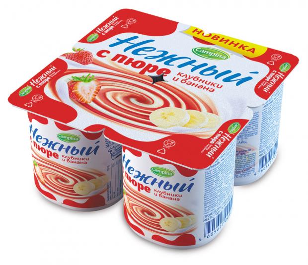Йогуртный продукт Campina Нежный с пюре клубники и банана 0,1%, 100 г