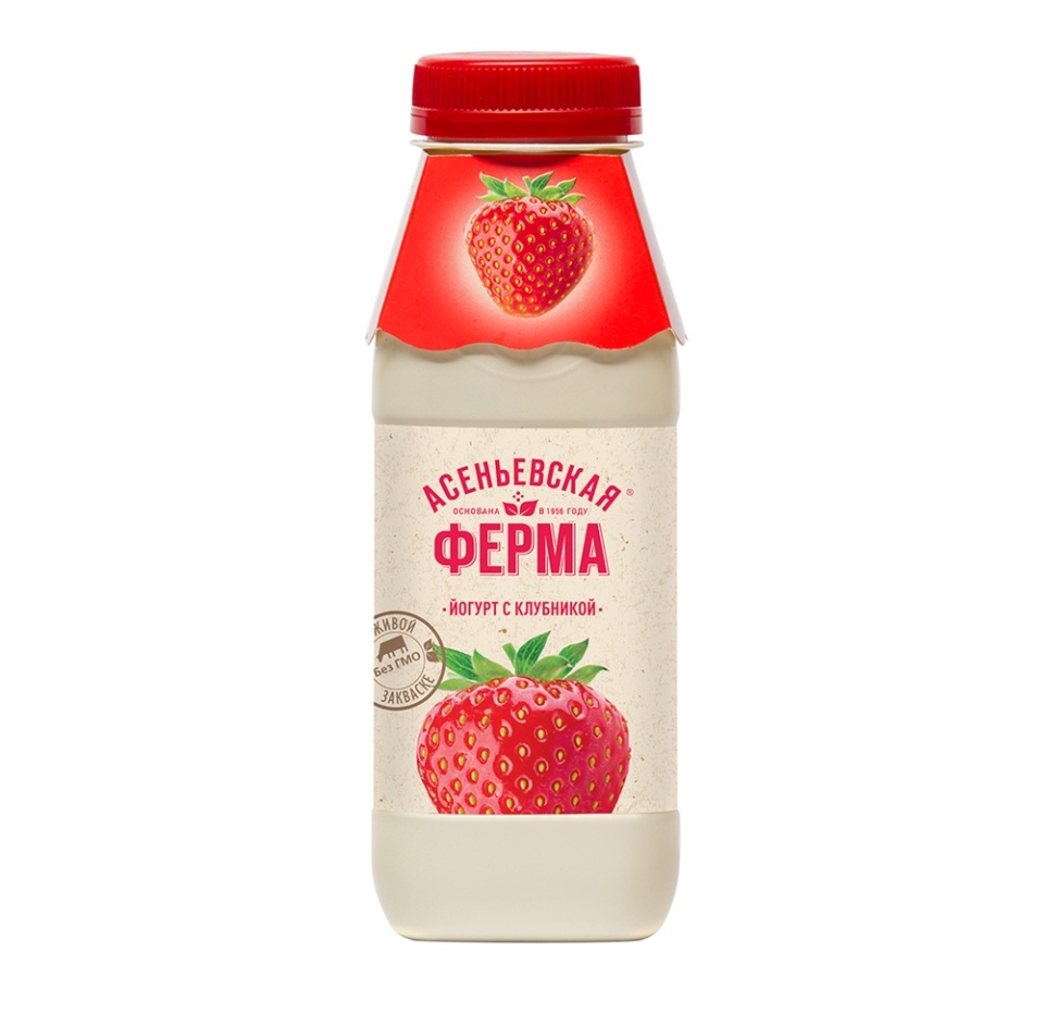 Йогурт питьевой Асеньевская ферма Клубника 1.5% 330 г