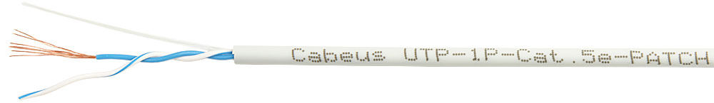 Кабель витая пара U/UTP 5e кат. 1 пара Cabeus UTP-1P-Cat.5e-PATCH 26AWG(7x0.16 мм), медь, многожильный (stranded), внутренний, PVC, серый, уп/500м, UTP-1P-Cat.5e-PATCH