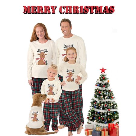 Christmas Family Matching Pajamas Sets Elk Printed Tops Plaid Pants Xmas Sleepwear Holiday Loungewear Jammies Pjs Outfit