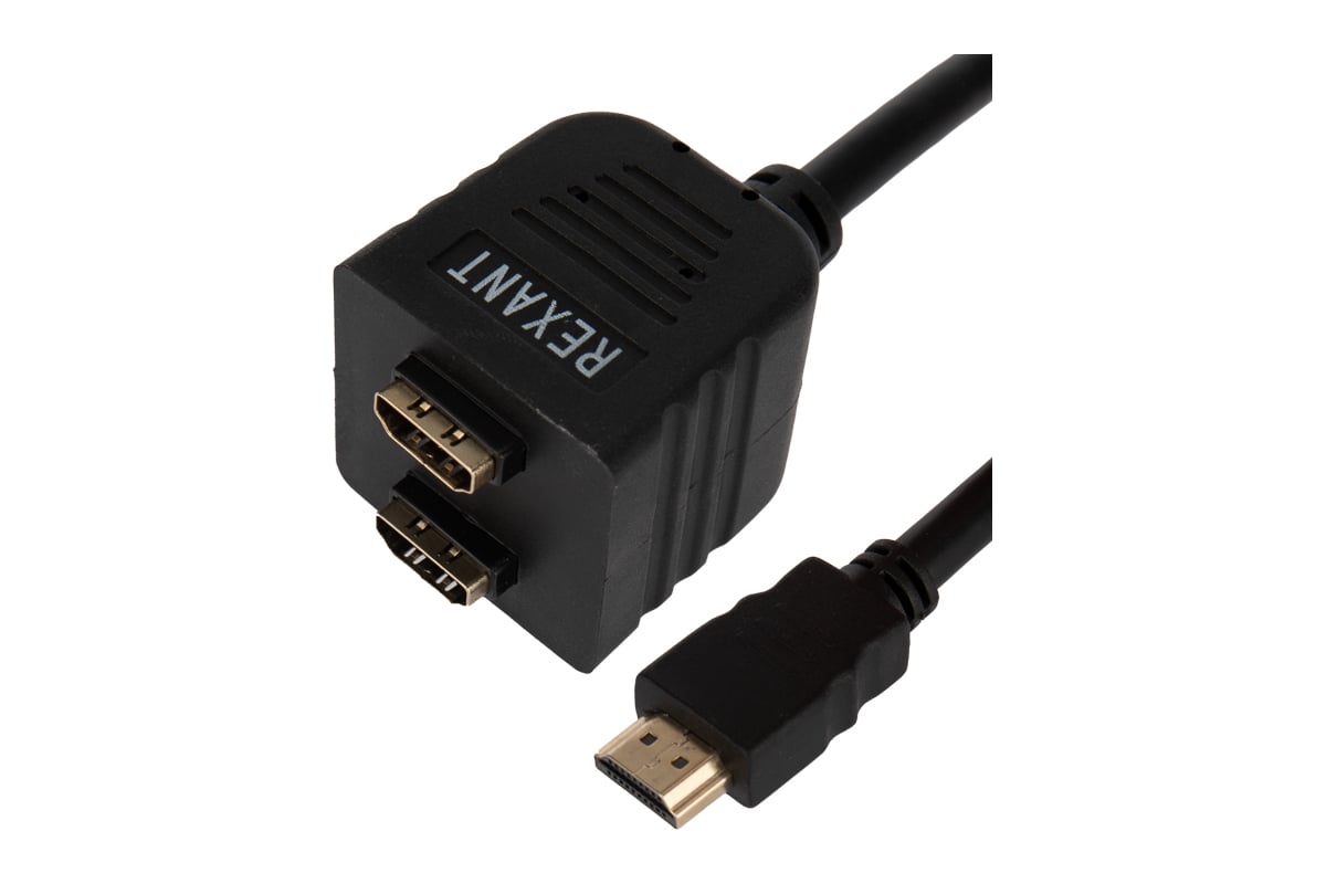 Кабель-разветвитель HDMI(19M)-2xHDMI(19F), 15 см, черный REXANT (17-6832)