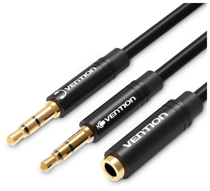 Кабель-разветвитетель mini jack 3.5 mm (F)- 2 x mini jack 3.5 mm, 1м, черный Vention (BBDBF)