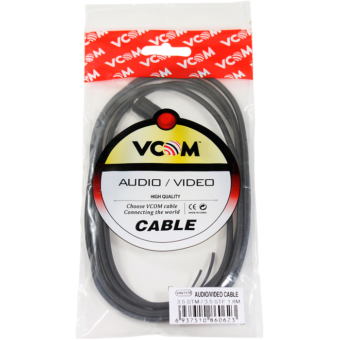 Кабель удлинительный VCOM Jack 3.5-Jack 3.5(f), 1.8м, черный (VAV7179-1.8M)