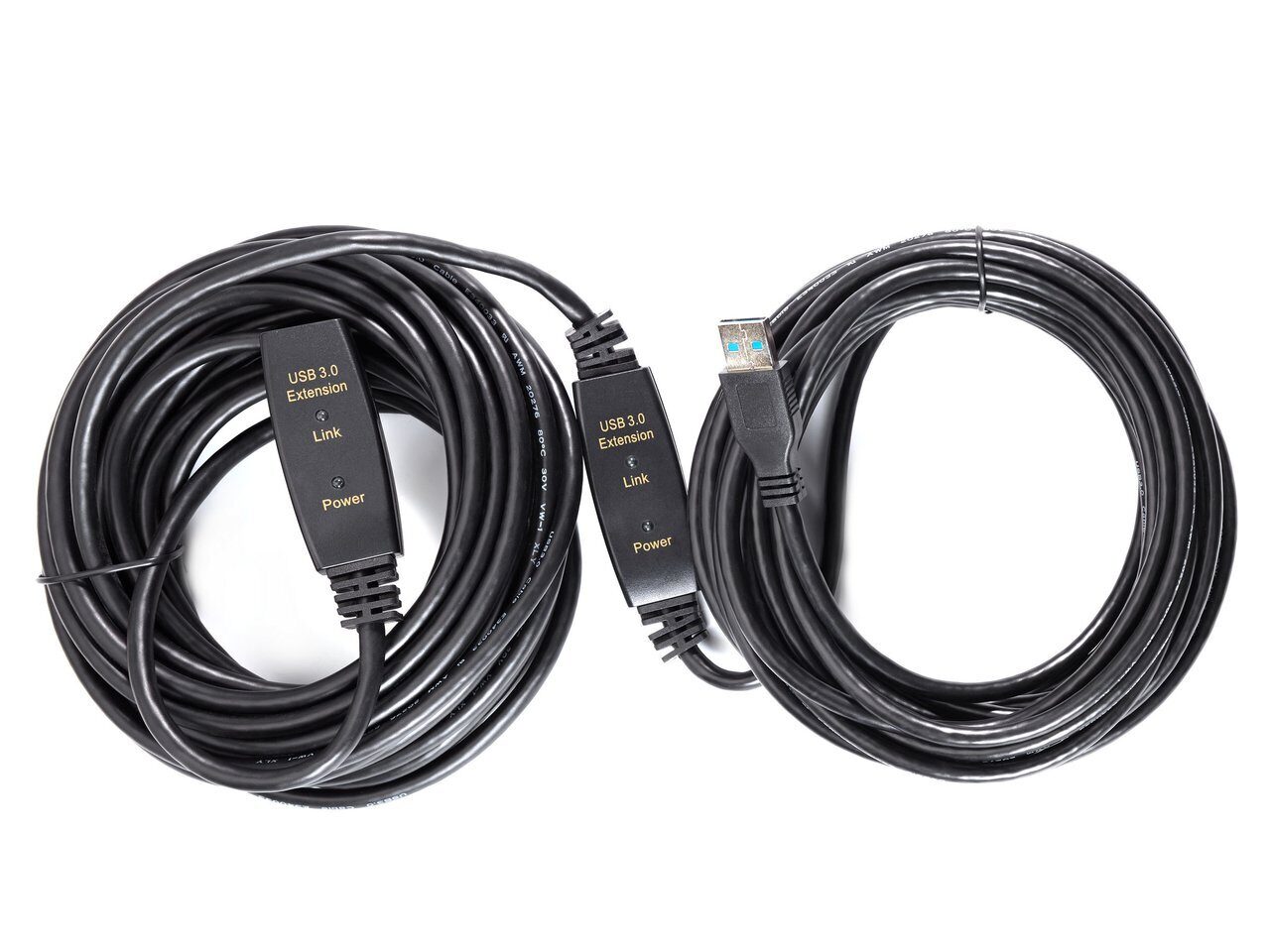 Кабель-удлинитель USB(Am)-USB(Af), ферритовый фильтр, 15 м, черный, AOpen (ACU827A-15M)