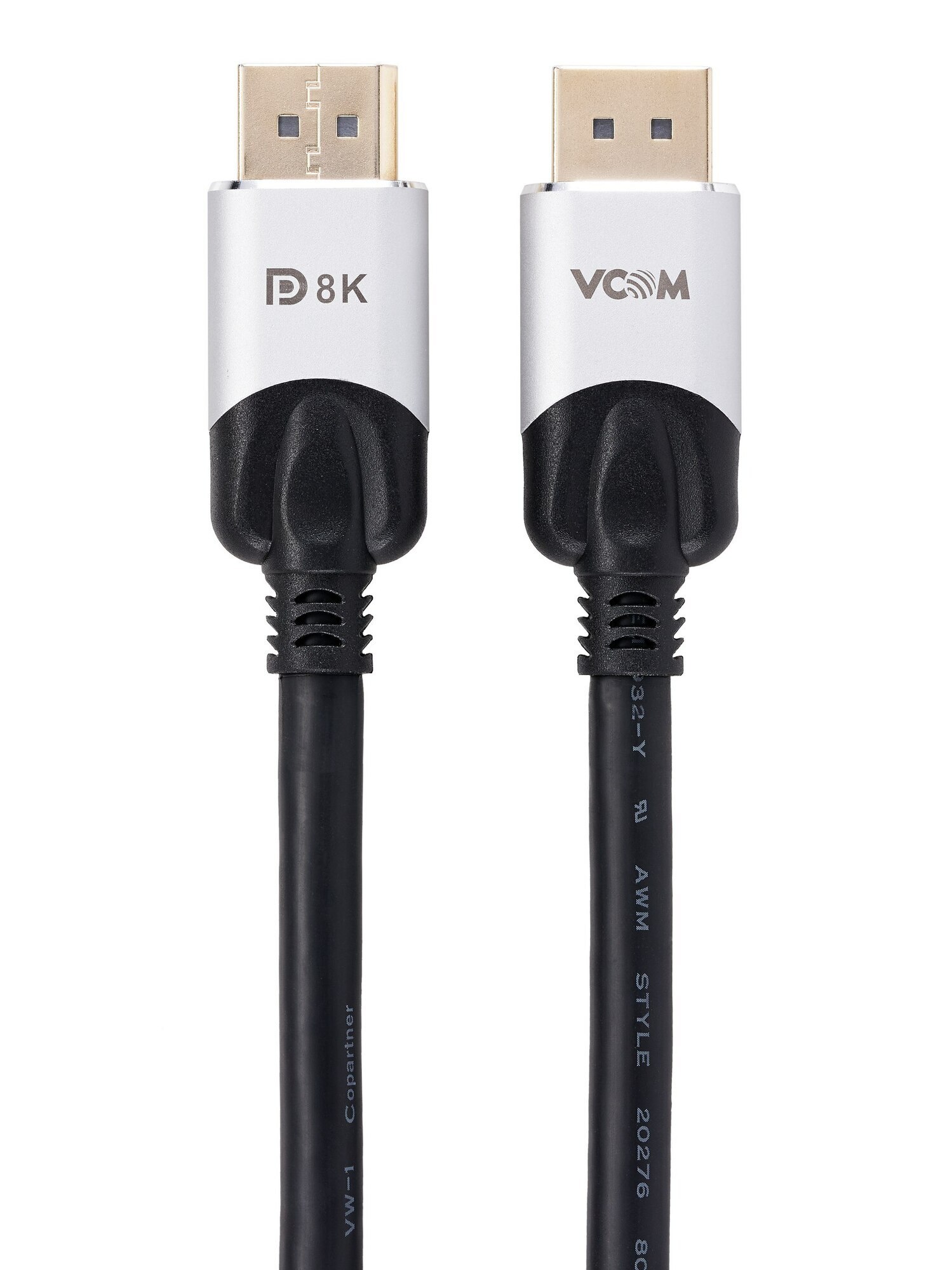 Кабель DisplayPort(20M)-DisplayPort(20M) 4K/8K, v1.4/1.4, экранированный, 5 м, серебристый/черный VCOM (CG635-5M), Черный/серебристый