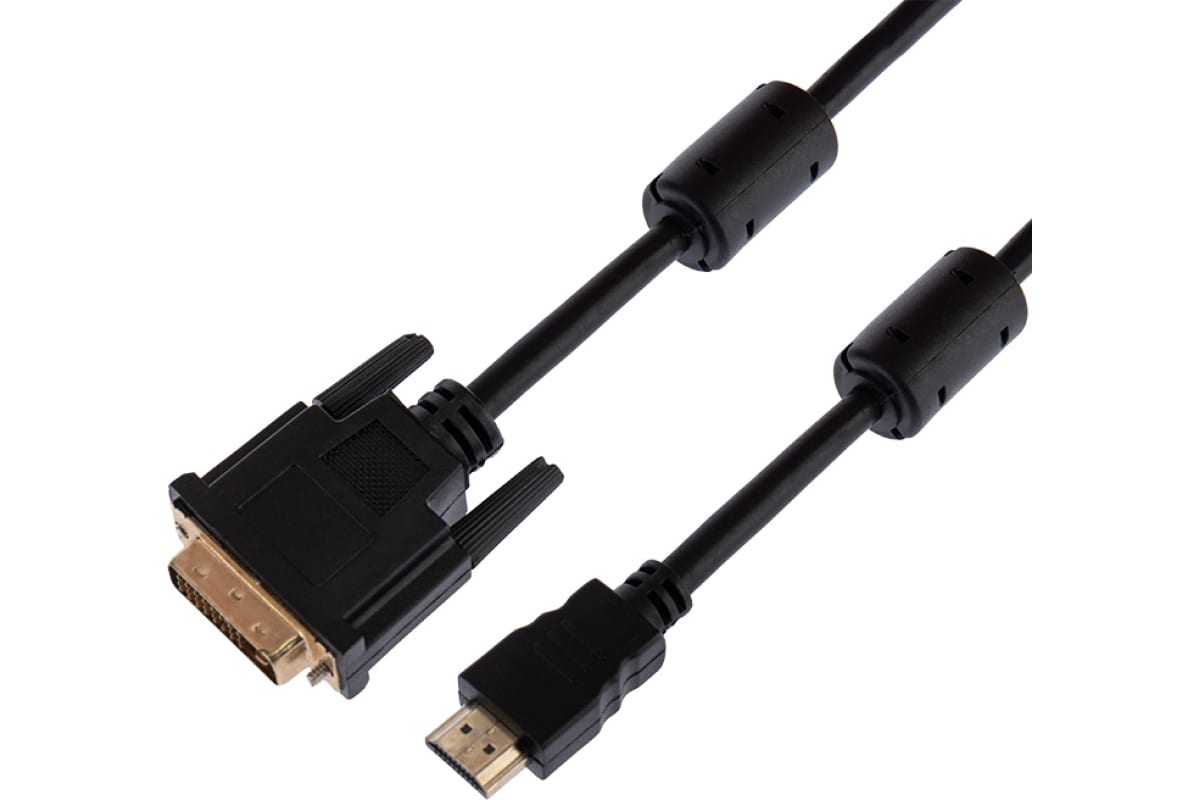 Кабель-переходник (адаптер) HDMI(19M)-DVI-D(19M) 4K, ферритовый фильтр, 1.5 м, черный REXANT (17-6303)