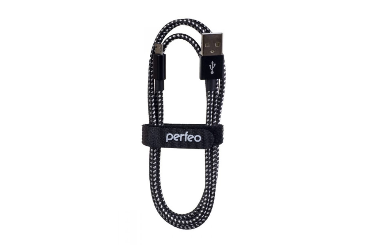 Кабель Micro USB-USB, 1м, белый/черный PERFEO (U4801 / 30010754)