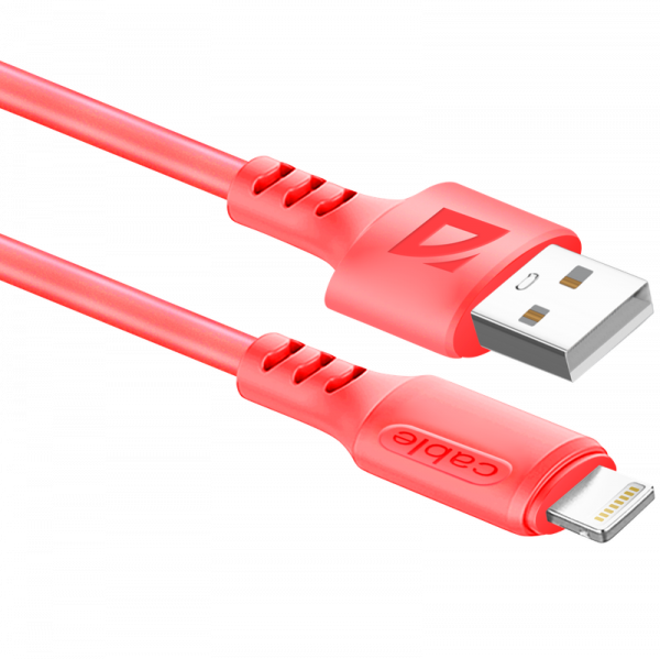 Кабель USB(Am)-Lightning 8-pin(M), быстрая зарядка, 2.4А, 1 м, красный, Defender F207 (87107RED), F207