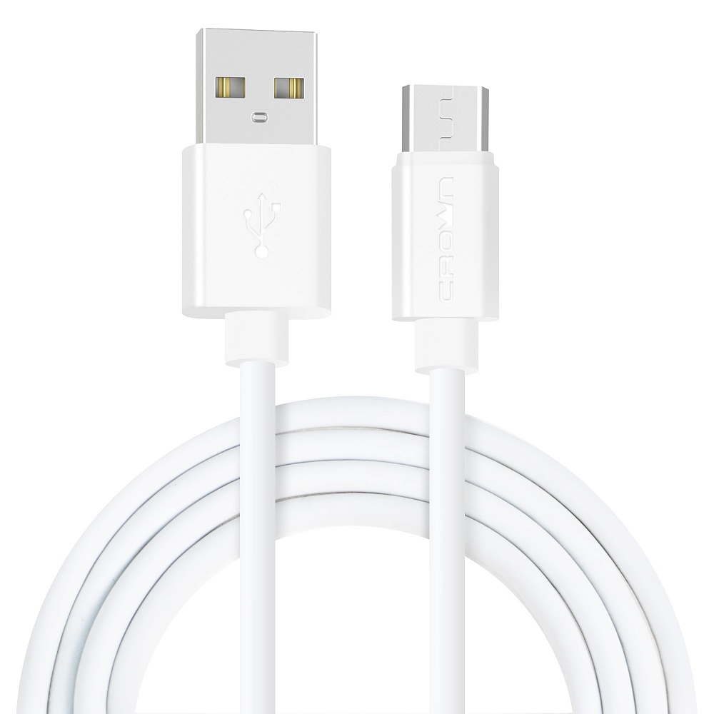 Кабель USB2.0-microUSB , Crown, 1m, белый, круглый, в оплетке ПВХ, коннекторы ПВХ, 2A (CMCU-3012M)