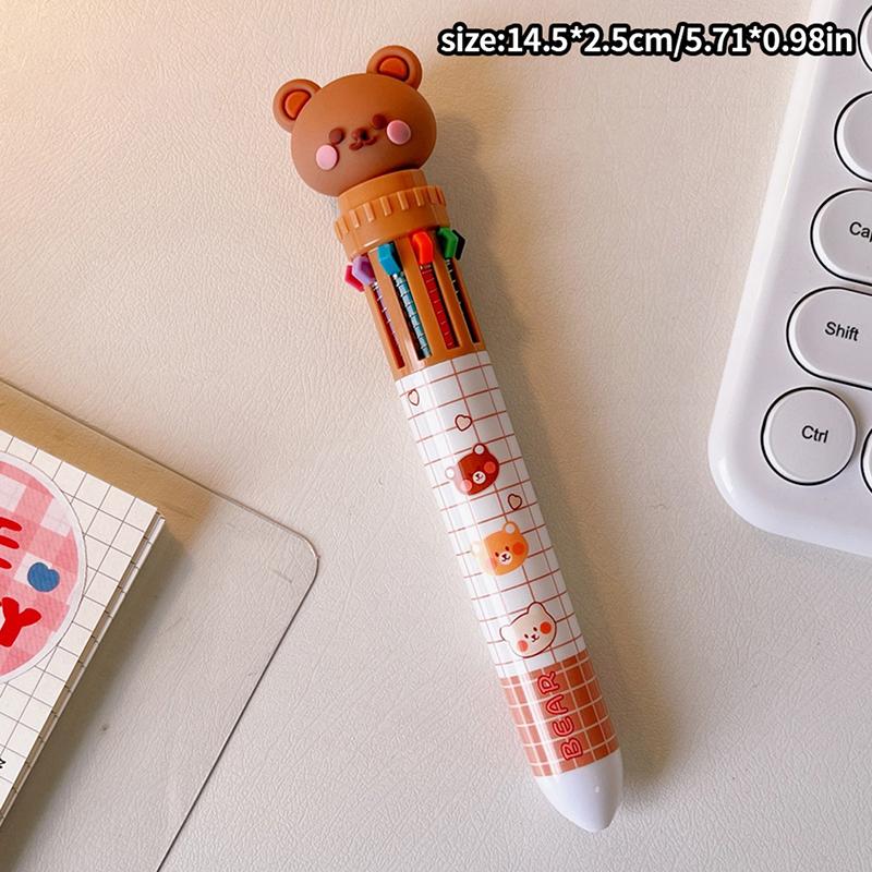Кавайный медведь, мультяшный силиконовый 10 цветов, массивная шариковая ручка, школьные канцелярские товары