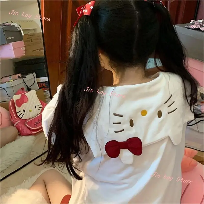 Кавайный свитер Hello Kitty Sanrioed Kt Cat с принтом, повседневный свободный свитер с длинным рукавом, Женский пуловер, матросские Костюмы для девочек,...