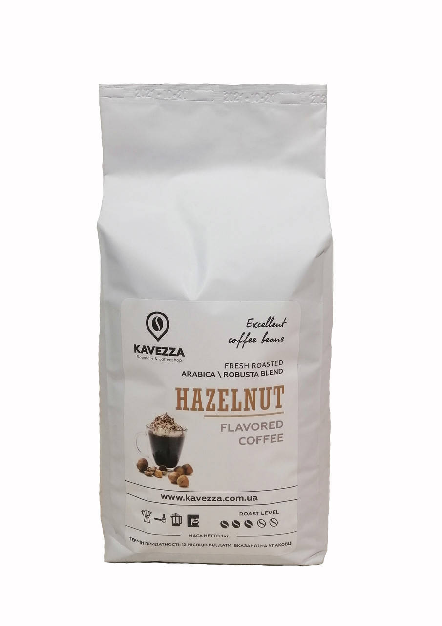 Зернова ароматизована кава "Лісовий горіх"(Hazelnut) - чудова класична суміш зерен арабіки та робусти в співвідношенні 50% арабіки на 50% робусти, з добавленням спеціального харчового ароматизатора