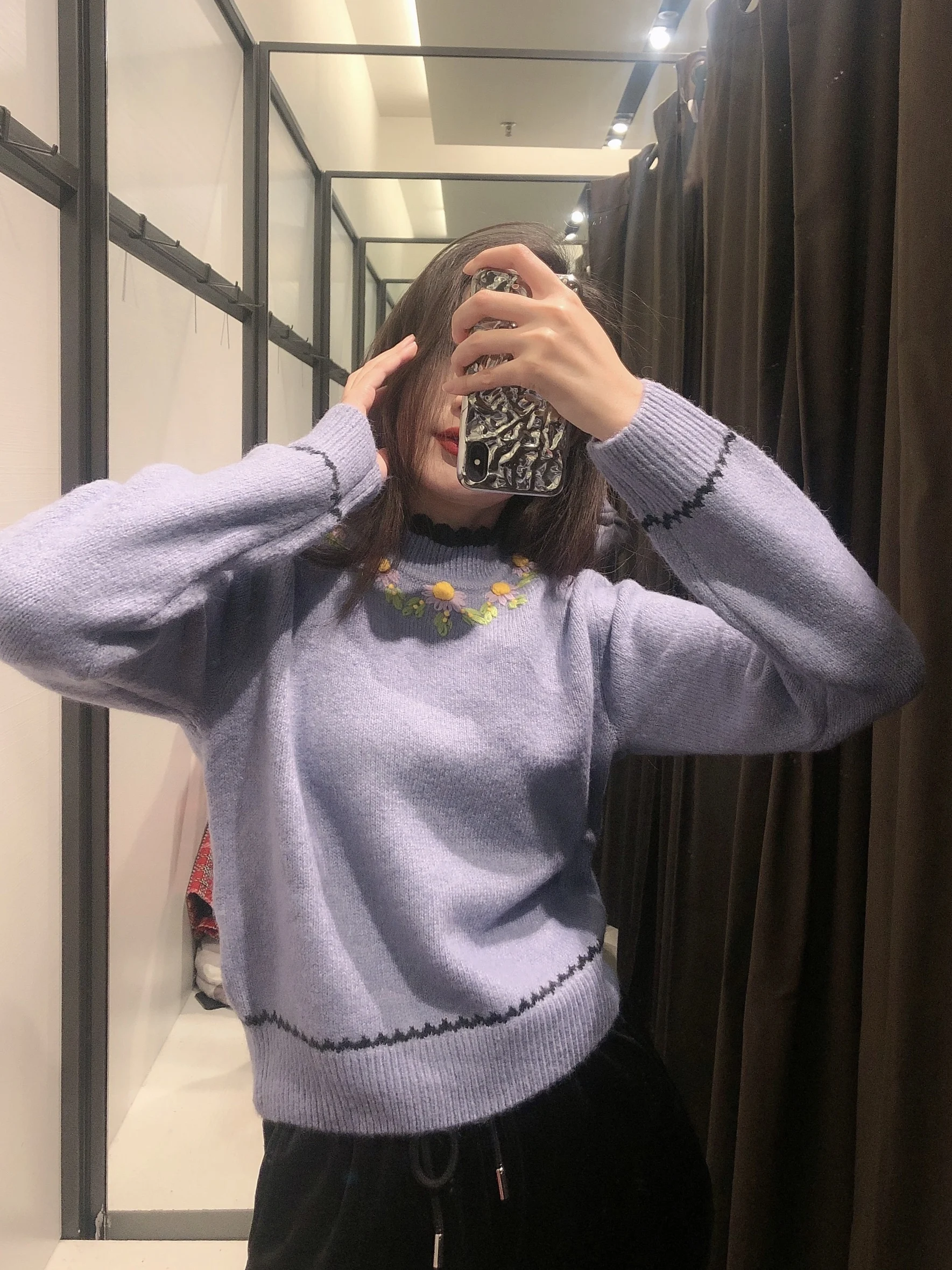2021 new autumn and winter women's sweater embroidery printing trend design long-sleeved casual retro fashion knitted top