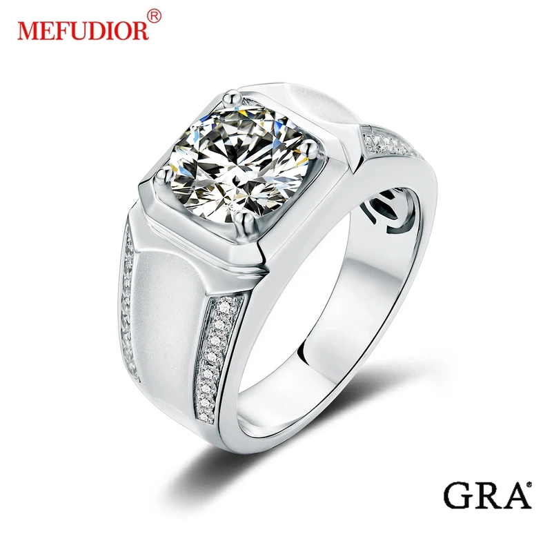 925 Sterling Silver Jewelry Luxury Rings For Men Moissanite 3 Ct D VVS1 Inlay Diamond Stone Engagement Wedding Band Bijoux M81C