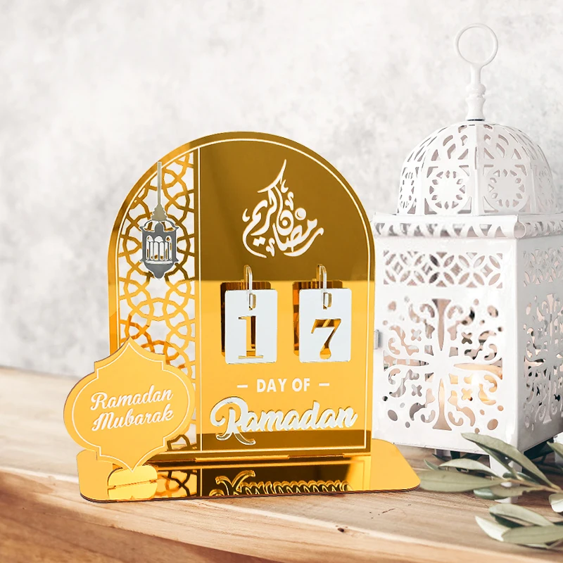 Календарь обратного отсчета EID Mubarak, акриловый золотистый, серебристый, белый календарь Рамадан, настольные украшения «сделай сам», мусульманские праздничные подарки, 1 комплект