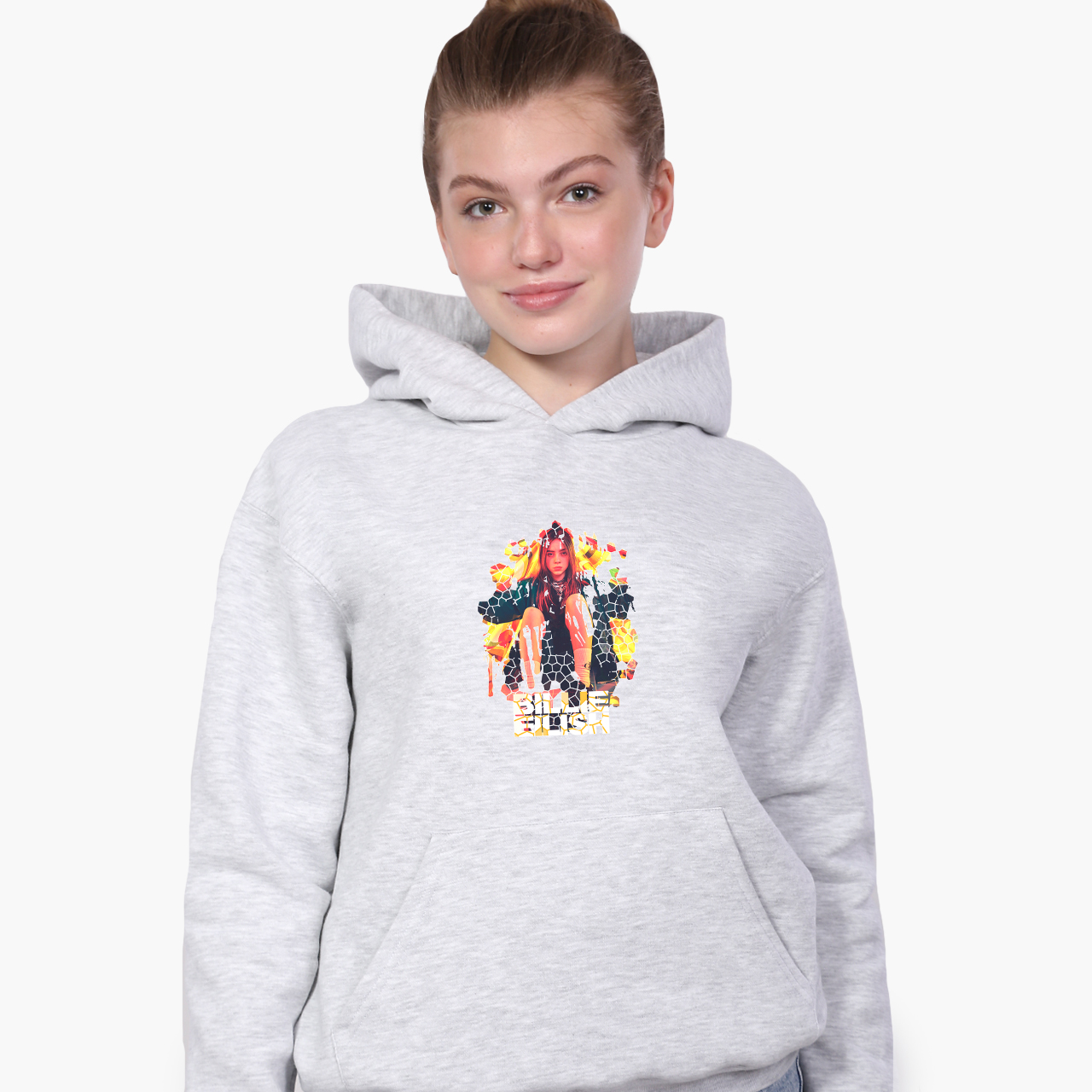 Худи детский Билли Айлиш (Billie Eilish) Светло-серый меланж (9298-1212) 164 см
