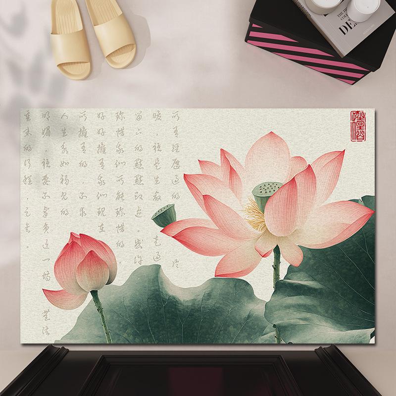 Каллиграфия Входная дверь Коврик для крыльца Пылеудаление, нескользящий и устойчивый к грязи Можно резать Домашний коврик для ног Дверь Шелковый кольцевой ковер 40 * 60Cm Silk Ring