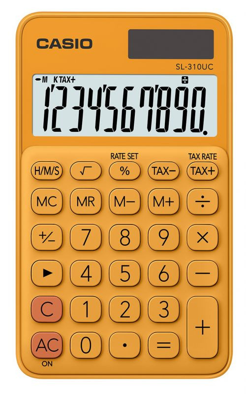 Калькулятор карманный CASIO SL-310UC, 10-разрядный, кол-во функций:9, однострочный экран, оранжевый (SL-310UC-RG-S-EC), SL-310UC
