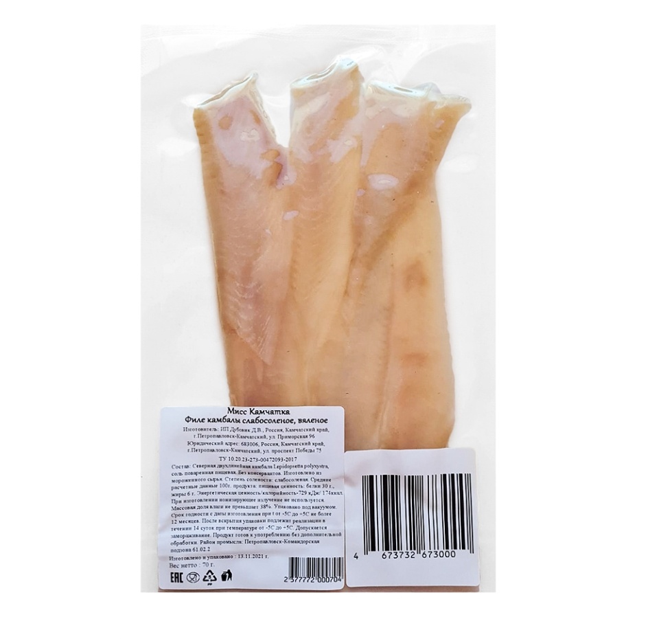 Камбала Мисс Камчатка Филе слабосоленое, вяленое, Россия