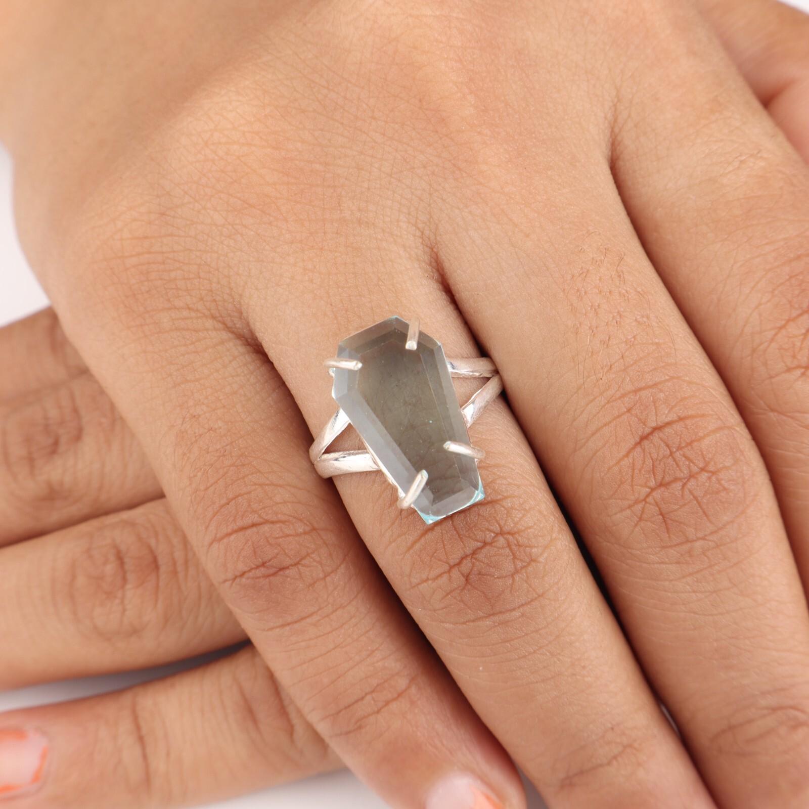 Камень Голубой Топаз Ювелирное изделие из стерлингового серебра 925 ручной работы Кольцо на день рождения RR-40-9 7
