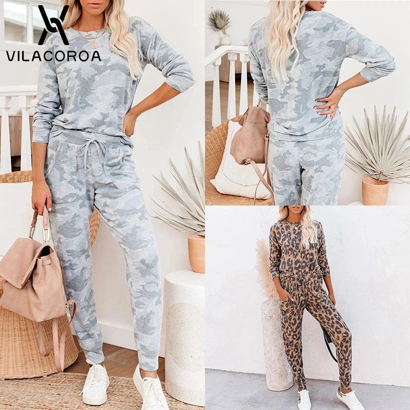Женский хлопковый комплект из двух предметов с круглым вырезом и длинными рукавами, облегающий длинный брючный костюм на завязках, Повседн...