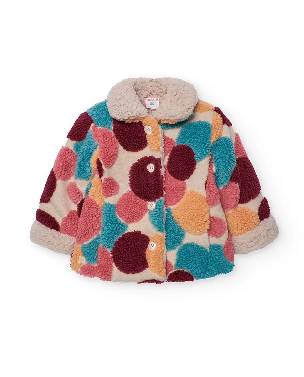 Детское пальто из искусственного меха с принтом на пуговицах Boboli, многоцветный