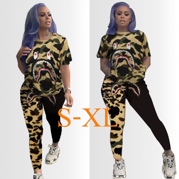 Камуфляж из двух частей одежды для женщин Спортивные костюмы Акула мультфильм фу