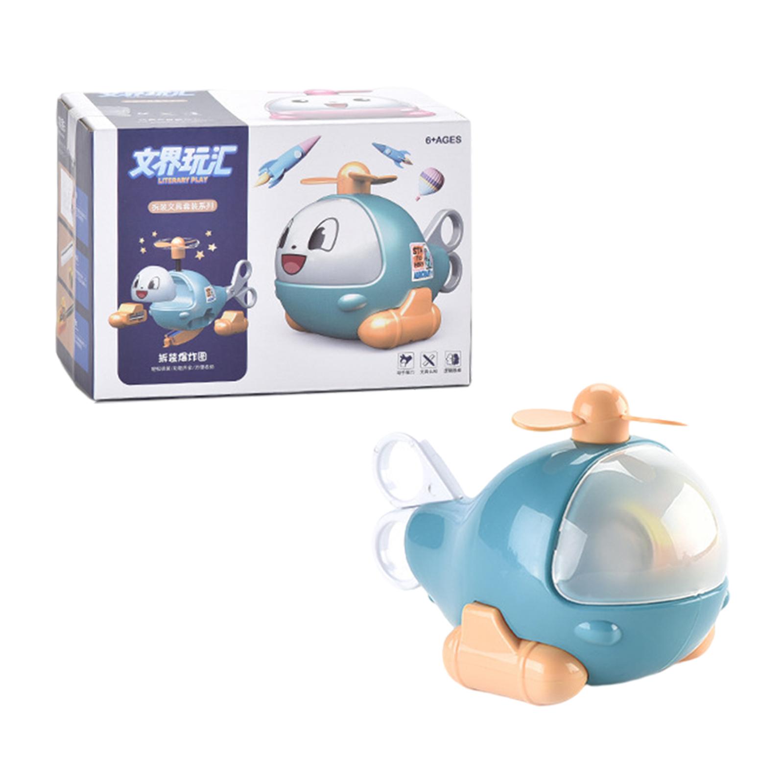 Канцелярские товары для детей | Набор канцелярских принадлежностей «Самолет 6 в 1» для мальчиков и девочек | Прячет ножницы, точилку для карандашей, браслет с линейкой, ластик, степлер, карандаш, синий