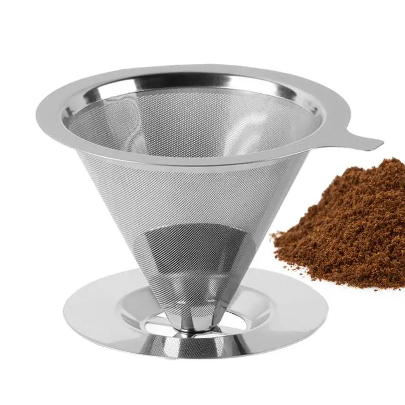 Капельный фильтр для кофе с подставкой, многоразовый двойной фильтр для кофе, безбумажный сетчатый фильтр
