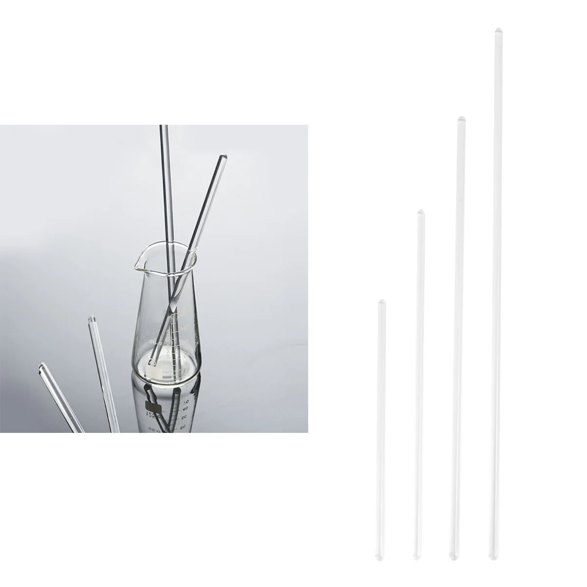 12Pcs Transparent Round Head Glass Stirer Solid Glass Rod for Laboratory Chemical Tests and Beverage Stirring 5x150 200 250