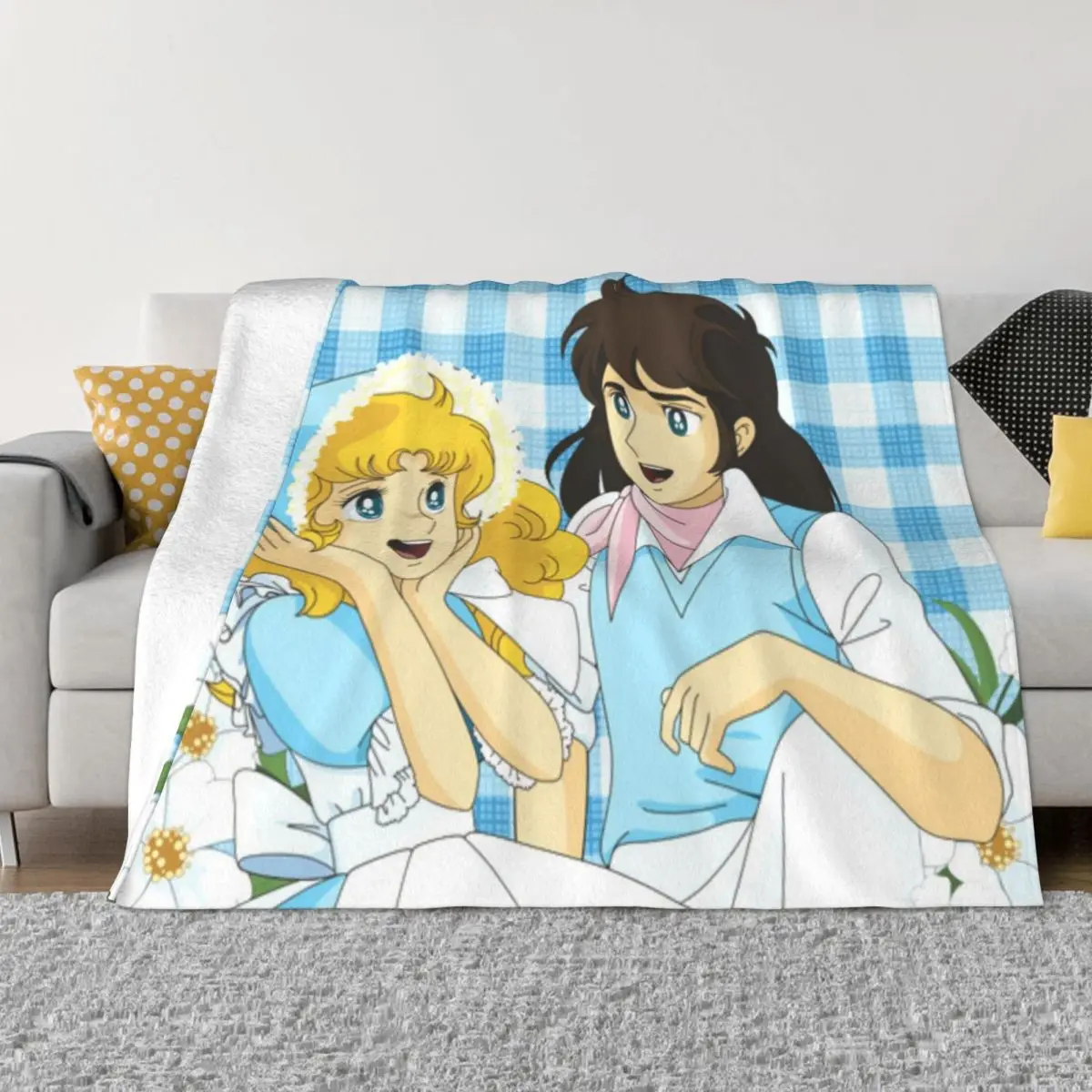 Карамельные конфетные аниме сине-белые портативные теплые Пледы для постельного белья для путешествий