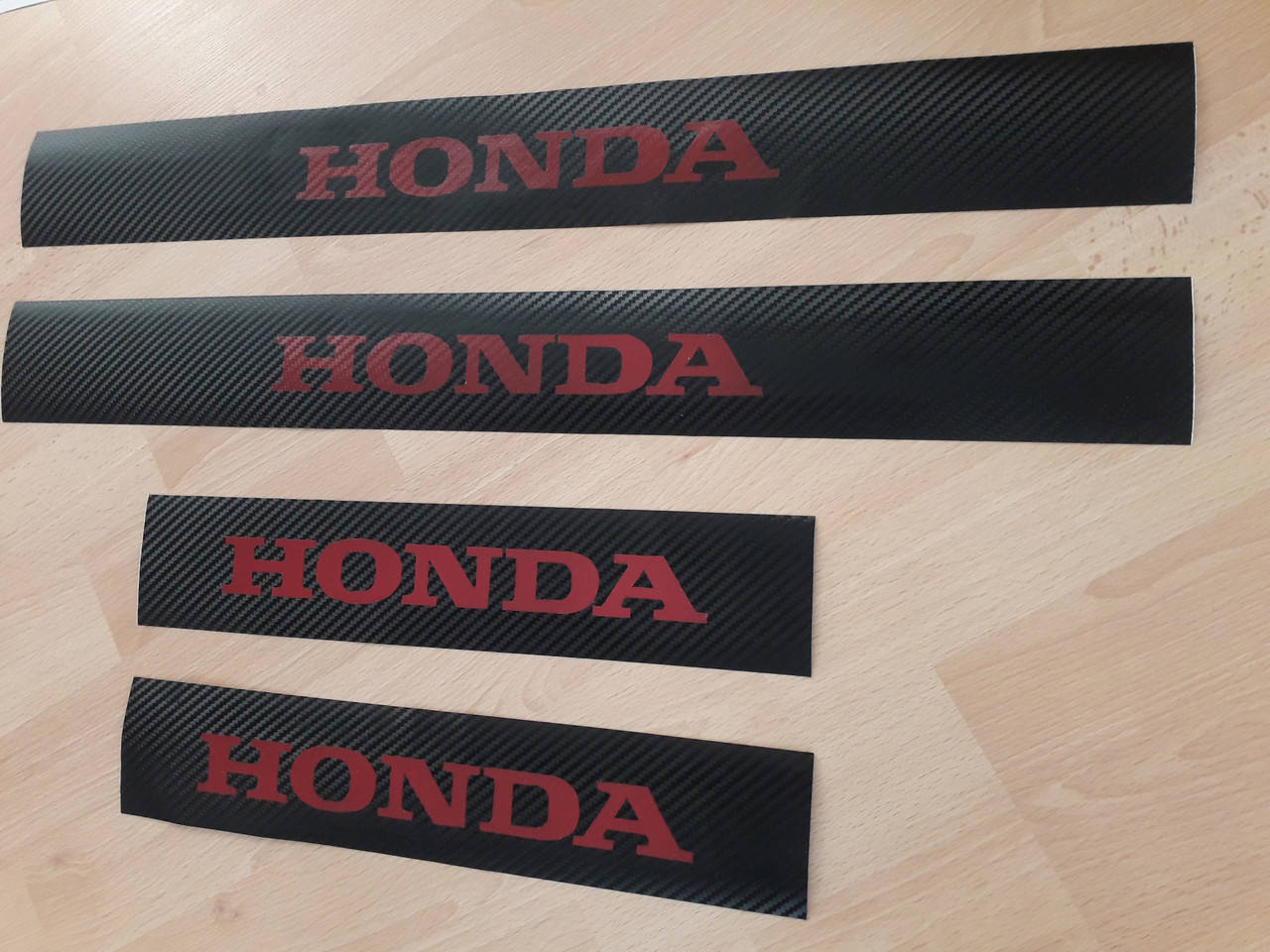 Карбоновые наклейки применяются для защиты внутренних, а также краев внешних порогов автомобиля, предотвращают появления царапин и потертостей лакокрасочного покрытия . Наклейки имеют выраженную текстуру карбона и придадут вашему автомобилю индивидуальный стиль. Изготовлены по индивидуальным размерам для всех марок автомобилей. Комплект накладок состоит из 4шт., на каждой наклейке имеется надпись марки или модели автомобиля. Легко устанавливаются, достаточно снять с бумаги и приклеить на необходимый участок порога. При установки не требуется дополнительных материалов и затрат.
