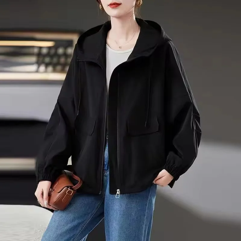 2025 Spring Autumn New Korean Hooded Trench Coat Women Long Sleeve Temperament Fashion Short Casual Windbreaker Female Outerwear