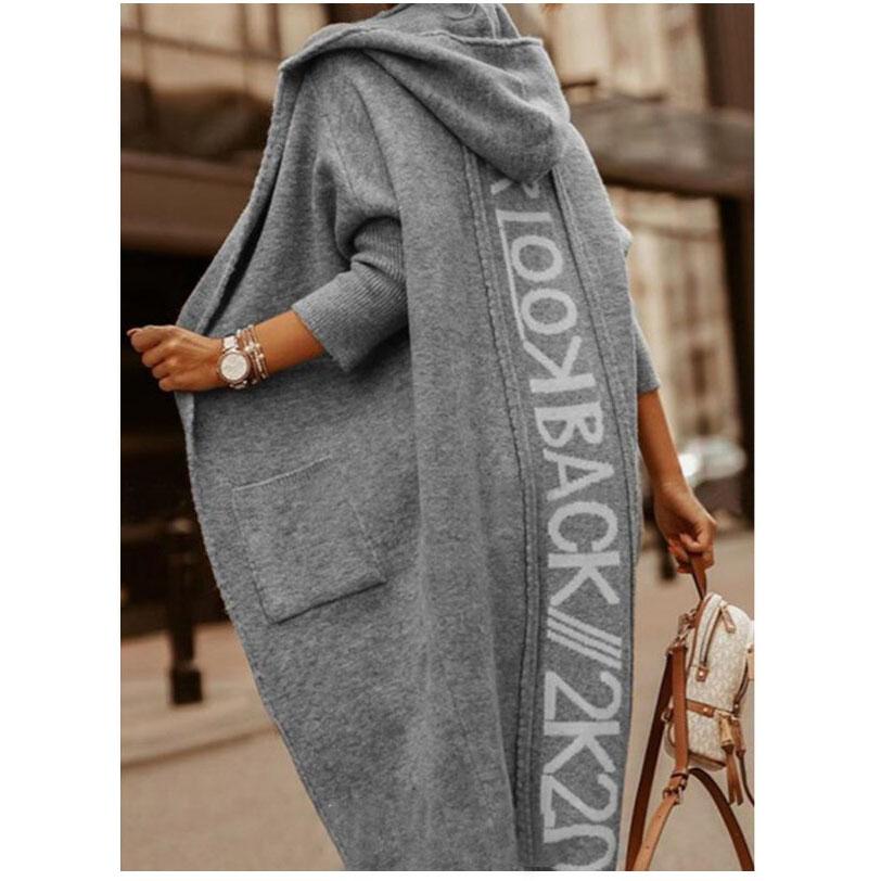 Кардиганы вязаный свитер женский весна осень зима письмо макси свободное мягкое пальто жаккардовое Y2k E-girl длинная вязаная куртка кардиган XXL серый