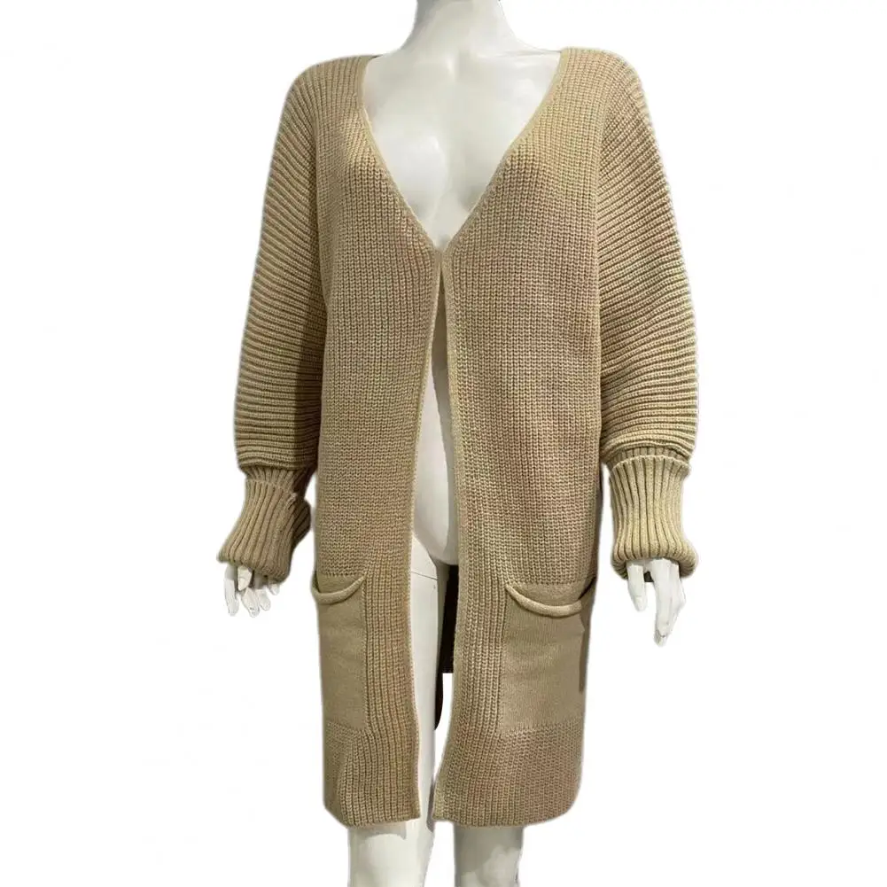 Кардиган женский зимний трикотажный с карманами, средней длины