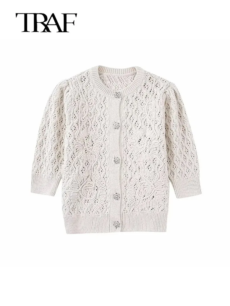 Кардиган женский летний трикотажный, с искусственными украшениями
