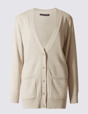 Кардиган из чистого хлопка с V-образным вырезом с двумя карманами