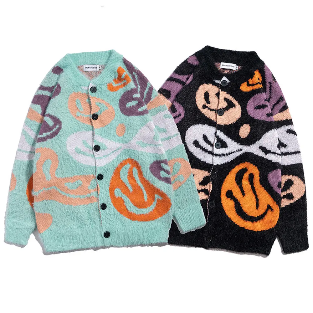 Кардиган мужской/женский, в стиле Харадзюку, зимний, свободный, с узором скрученными лицами, 2021