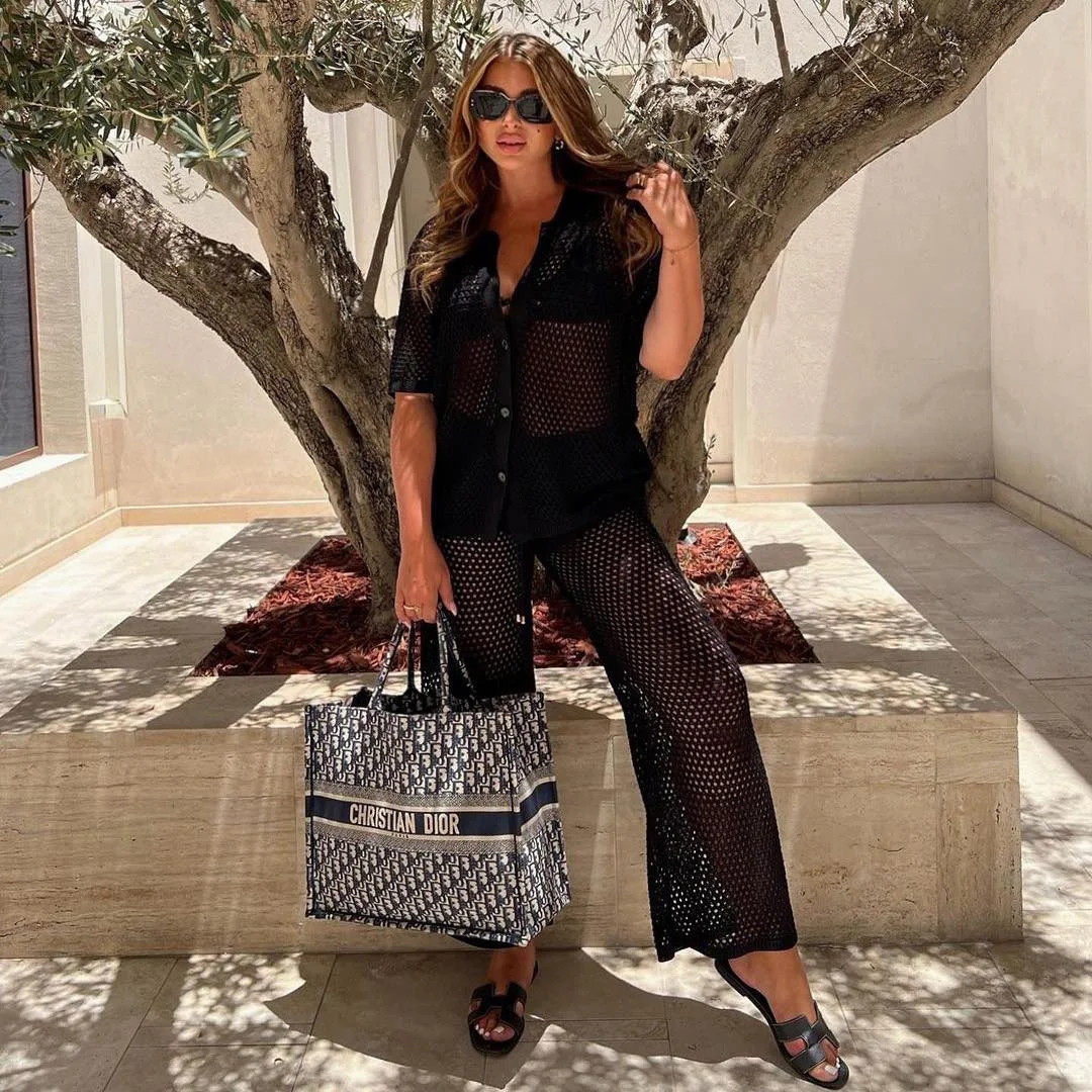 Кардиган с вырезами и прямые брюки, пиджак с завышенной талией для пляжа, уличная одежда, 2024