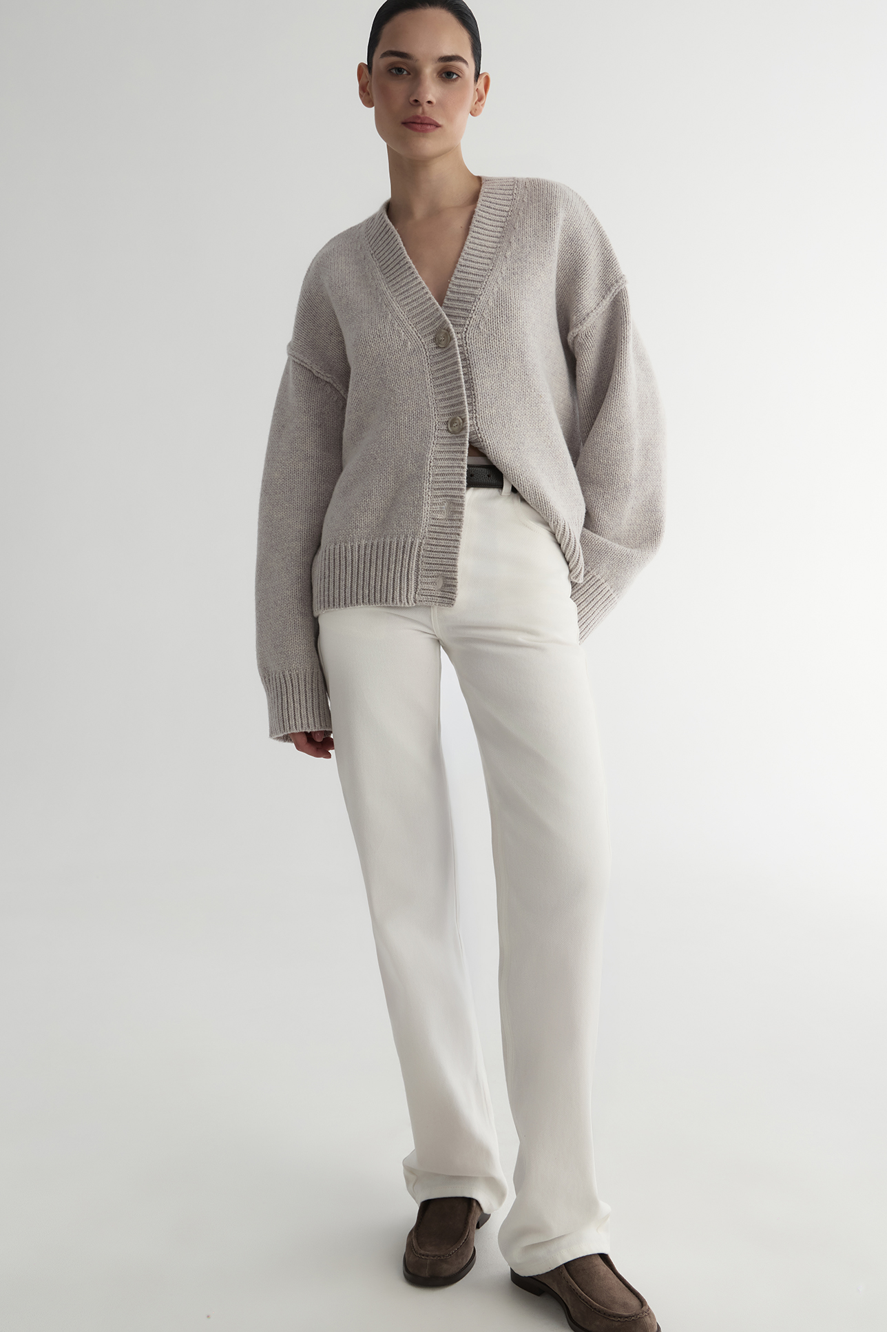Кардиган с открытыми швами светло-серого цвета, M