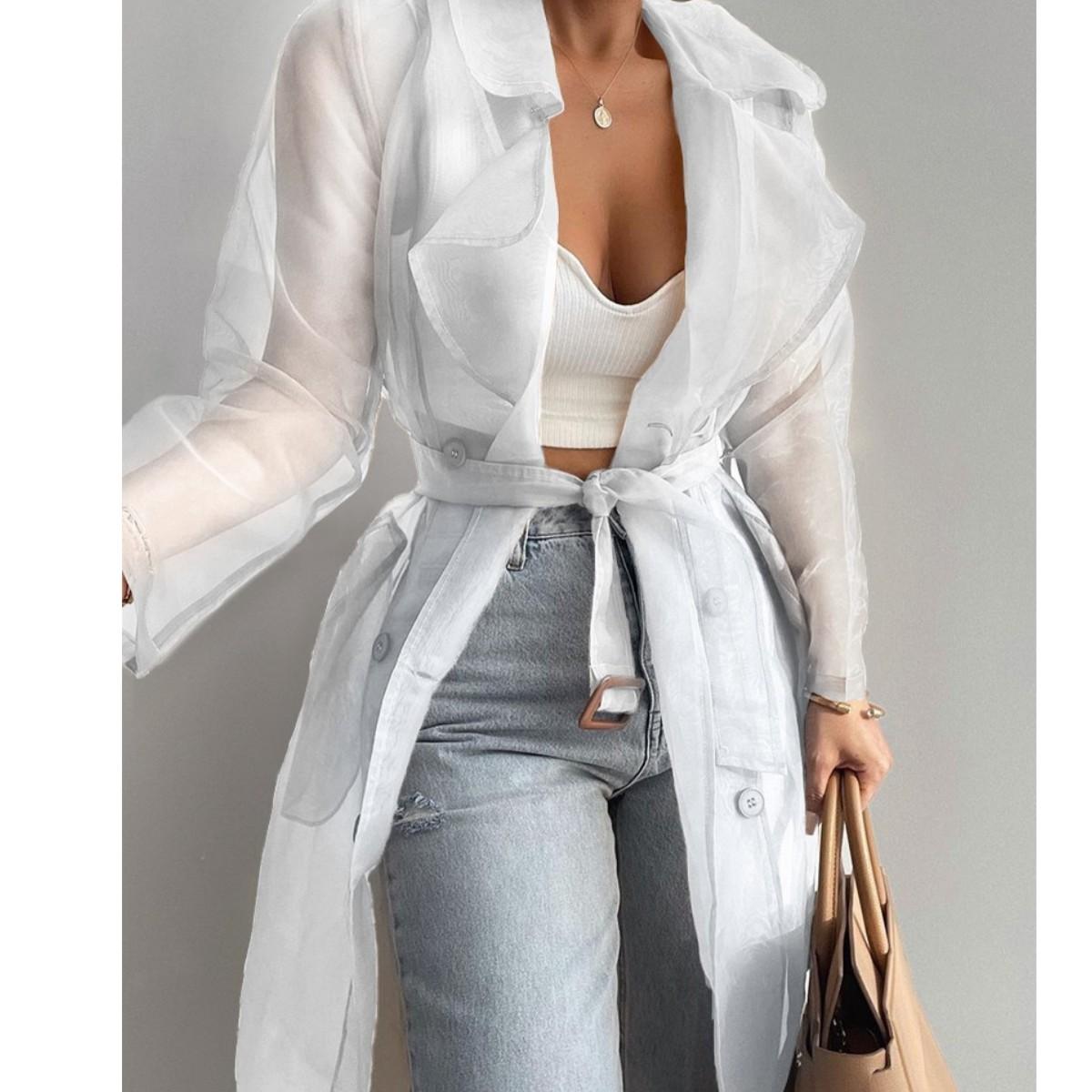 Кардиган с рукавами-фонариками средней длины, куртка-рубашка, свободная женская рубашка, рубашки с длинными рукавами, женский повседневный топ, женская одежда S белый