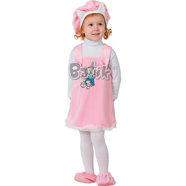 Детский карнавальный костюм для девочек Кошечка подойдёт хрупкой и нежной натуре. В комплект карнавального костюма входит сарафан нежно-розового цвета с нашивкой милой кошечки, розовая шапочка с белыми ушками и розовенькие пинеточки. Детский карнавальный костюм Кошечка выполнен из качественной плюшевой ткани.
