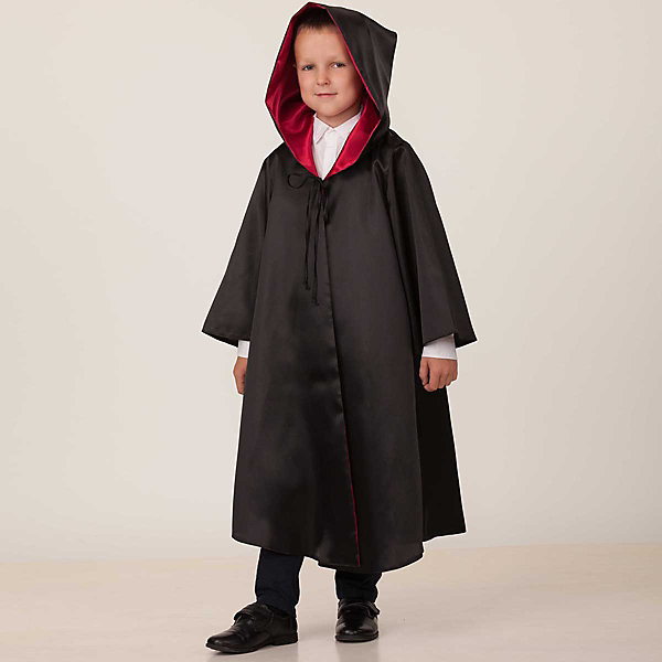 Карнавальный плащ позволит ребёнку перевоплотиться в волшебника. Модель качественного пошива легко надевается поверх любой одежды и фиксируется завязками. Есть капюшон.