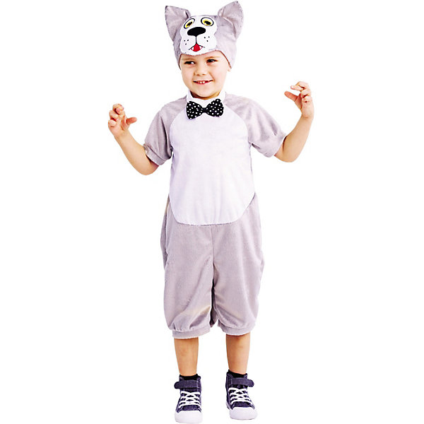 И совсем не страшный и не злой серый волк. Карнавальный костюм "Волк Костик" для озорных мальчишек. Необычный карнавальный костюм выполнен из плюша в виде комбинезона. Комбинезон на застежке молнии на спинке, украшен хвостиком. Маска-шапка в виде мордочки волка с объемными ушками.