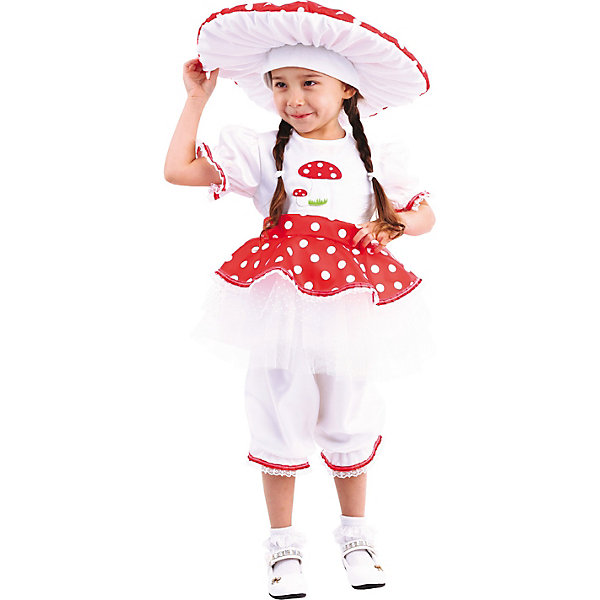 Карнавальный костюм Мухомор создаст отличное настроение на любом празднике. Это отличный костюм для тематического выступления. Он качественно пошит и хорошо смотрится как издалека, так и вблизи. Модель предназначена для девочек. Комплектацию костюма составляет платье, штанишки и головной убор.